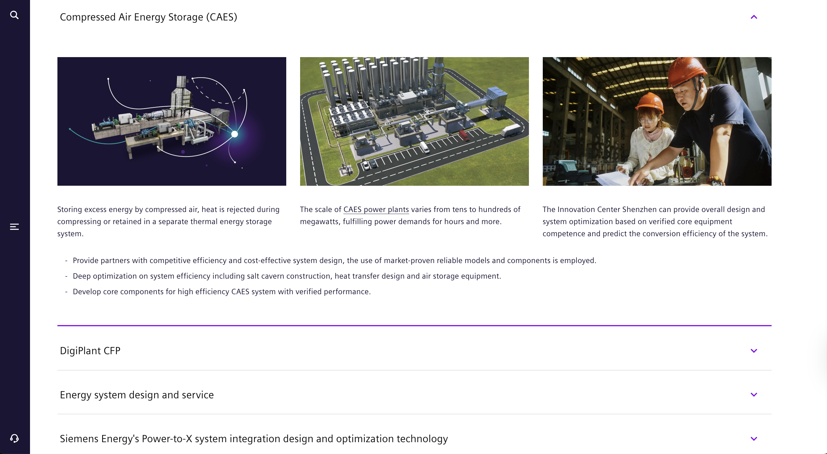 The Siemens Energy Innovation Center in Shenzhen (ICS) is a hub for cutting-edge green technology—think massive wind turbines, compressed air energy storage, and power-to-X systems. But when I joined, the digital presence didn't match that innovation at all. I was brought on to redesign the ICS section of the global website to align it with the main Siemens Energy brand and make dense engineering content actually approachable for partners, government officials, and clients.